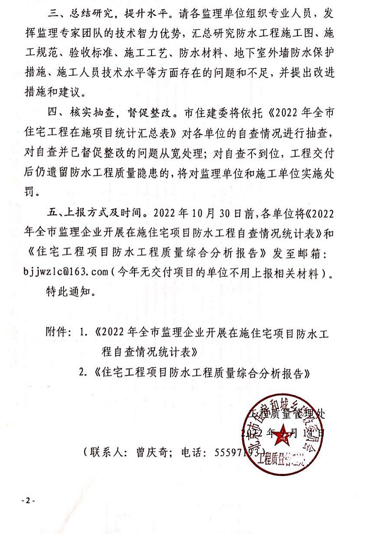 轉(zhuǎn)自:北京市建設(shè)監(jiān)理協(xié)會鏈接:關(guān)于組織監(jiān)理單位開展在施住宅項目防水工程質(zhì)量自查工作的通知-北京市建設(shè)監(jiān)理協(xié)會(bcpma.org.cn)